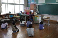 【5月20日】子ども達が楽しみにしている読み聞かせがありました。本年度も池田様に来ていただいています。様子を見に行くと、みんな真剣な表情で話しに聞き入っていました。本や文字に触れることはとてもよいことです。地域の方のご協力に感謝です。