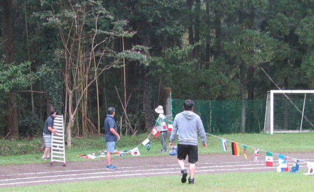 次は、運動会当日の朝の準備です。7時くらいから来ていただいて、準備を行いました。