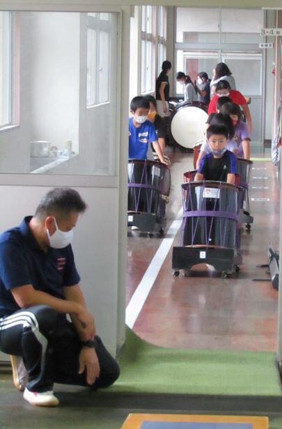 9月25日(金) この日は太鼓の練習日で、宮崎市から講師の方が来校されました。運動会での太鼓の演技も無事終わり、新たな披露に向けてのスタートの日でした。一通りの演奏後、隊形を新しくしました。横一列だったのを2列に変え、何人かは位置も入れ替えました。また、新しく、「鉦(かね)」も取り入れることになりました。そして、演奏曲とチームに名前を付けることが宿題として出されました。どんな名前になるのでしょうか?楽しみですね。