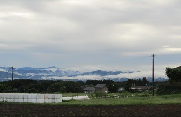 学校の近くで撮りました。雲海とまではいきませんが、雲がたなびいていました。朝の幸ヶ丘三岳です。
