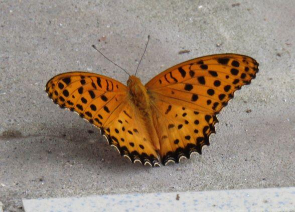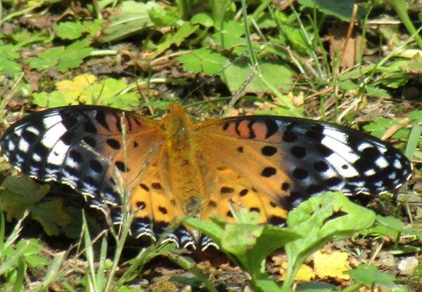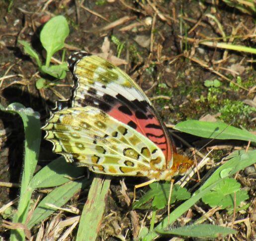 運動場や校舎の入り口にはこんなチョウもいました。羽の表と裏ではこんなにも色が違うのですね。