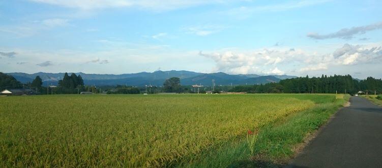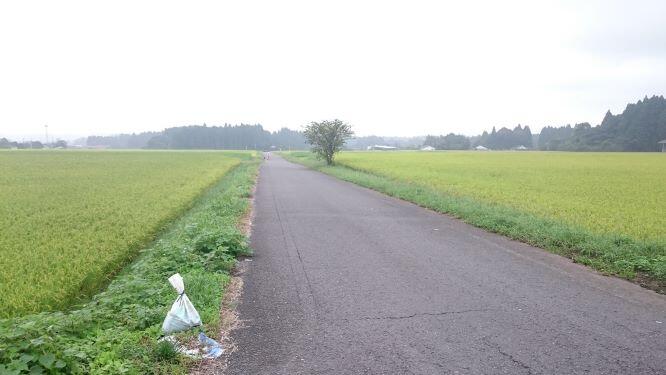 下の写真のように田んぼが並んでいるところの何枚かは稲とは異なるものが植えられていました。緑色が濃く、