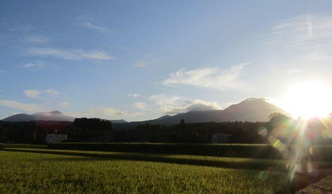 撮影した日の高千穂峰から夷守岳の山々です。左が朝のもので、右は夕方のものです。