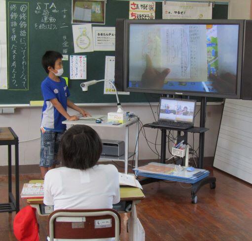 3年生は修飾語についての授業でした。教科書の文に修飾語を付けたり、自分で撮った写真に