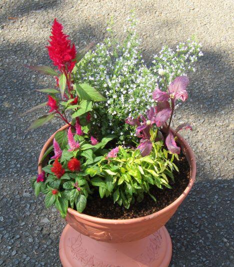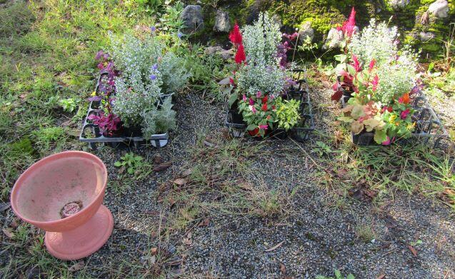 届いた花です。丸い鉢に植えます。土を入れて、苗をバランス良く、センス良く(^_^;)鉢に植えます。