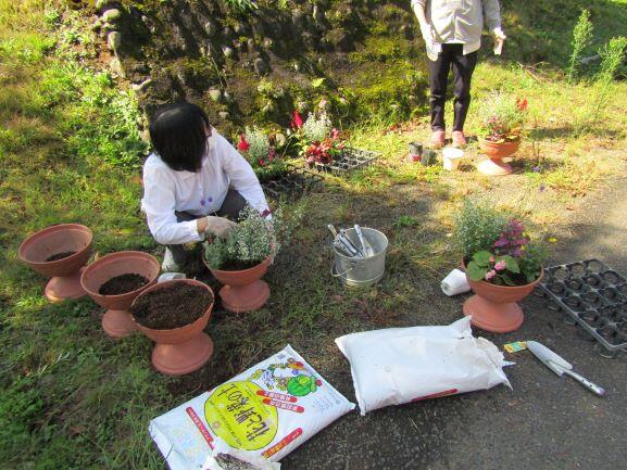 さて、10月1日(木)の日に、花の苗が届きました。教頭先生や事務の先生、保健室の先生が鉢に植えて玄関に飾っていただきました。寂しくなっていた玄関ですが、これでまた華やかになることでしょう。3人の先生方、ありがとうございました。