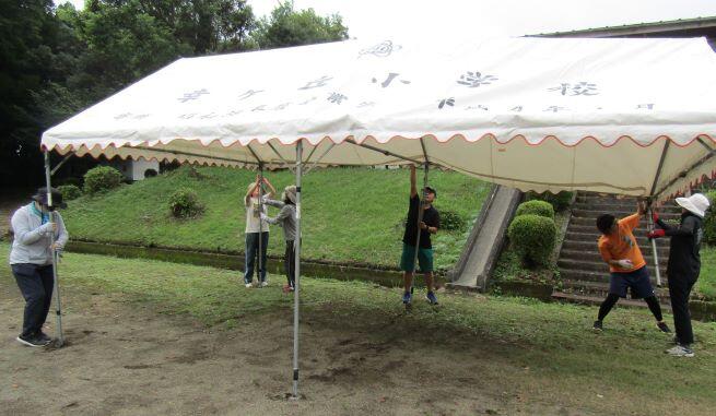 さて、本校の運動会まで1週間になりました。週間天気予報はくもり時々雨が続くようですが、何とかできる!と思っています。そんな中、この日も残りのテントを立てました。運動会の練習も順調に進んでいます!