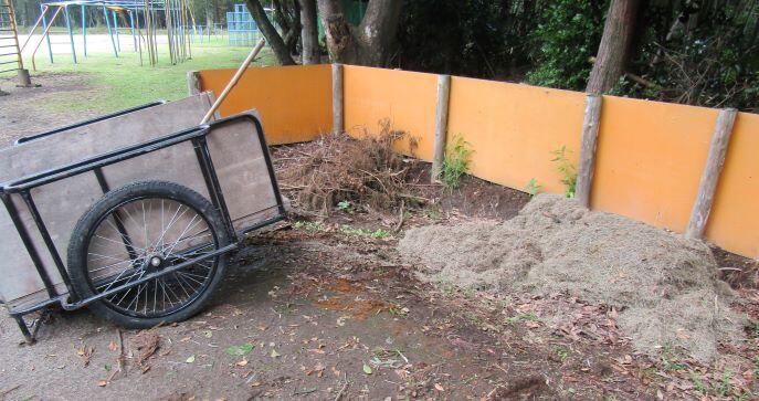 先週、用務員さんが草刈りをしていただいたので、草集めもしました。リヤカー2台分ありました(^_^;)