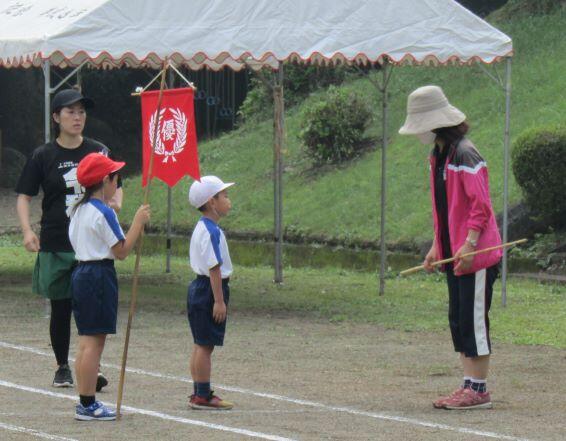 また、声の大きさ、手の振り方などが良かった子どもと団をほめていただきました。そして、雨が降る前に、入退場門