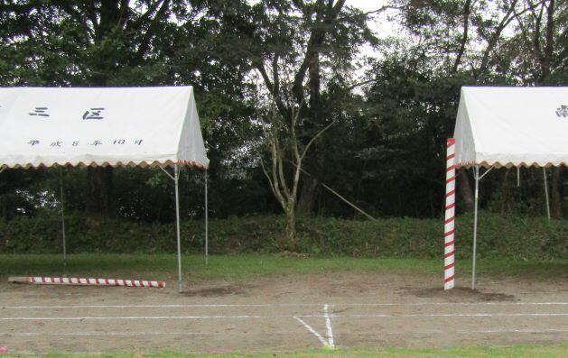 本部席側のテントを立てます。この日の人数は7人でした(^_^)v