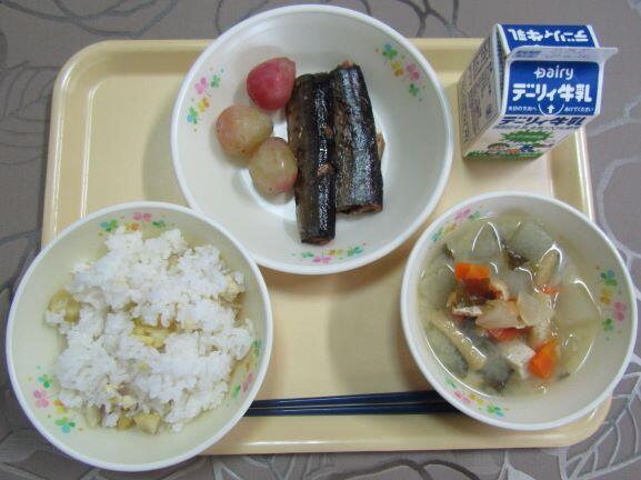 栗ご飯でした。とってもおいしかったです。(台風10号での被害は大丈夫だったのでしょうか?)