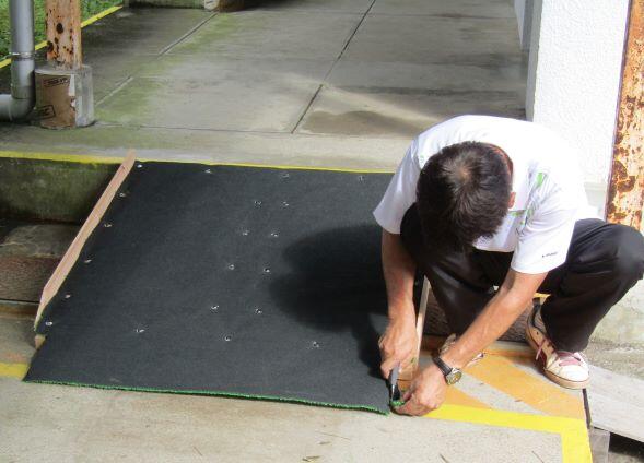 古いスロープは子どもたちの机の天板を利用したものでしたので、机の幅しかとれませんでしたが、新しいスロープ