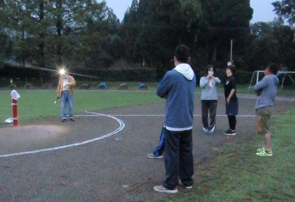 この日の練習は全員リレーでした。各団でバトンをもらう位置などを決める作戦会議を開いて、走りました。