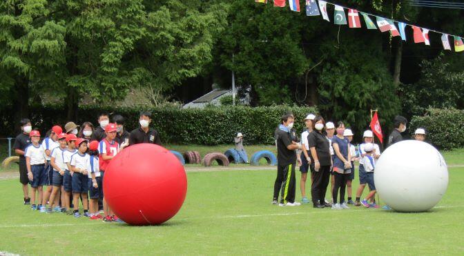 大玉転がしは親子でワンチーム!親御さんを置いていかないようにね(^_^;) 生駒音頭に新小林音頭、保護者の方も大勢参加してくださいました。ありがとうございました。閉会式です。今年は白団が優勝しました。おめでとう(^o^)