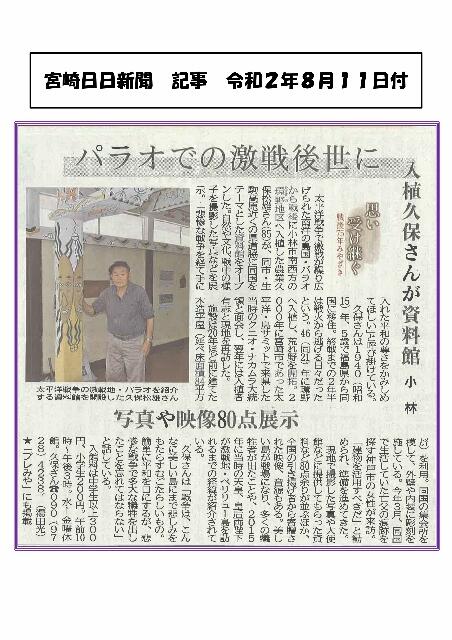 新聞記事を載せます。前にも紹介したパラオ館に関する記事です。 文字が見にくいのでPDFでも載せますので下のPDFからご覧ください。⇒8月11日付け 宮日新聞記事 入植 パラオ館.pdf