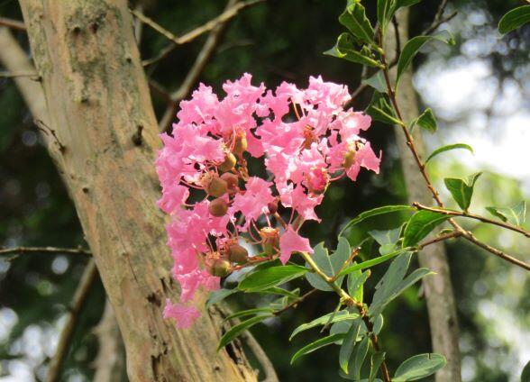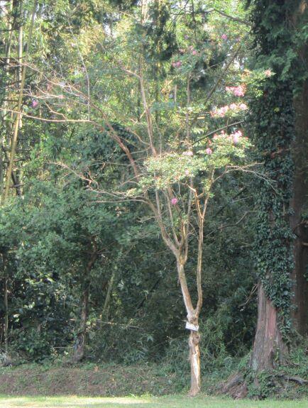 作業後に校内を見て回りました。すると運動場のサルスベリに花が咲いていました。
