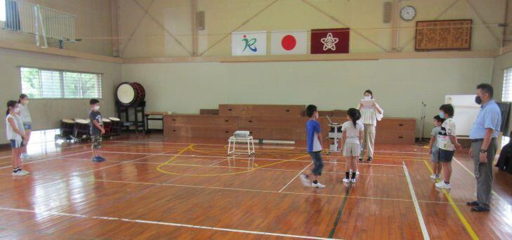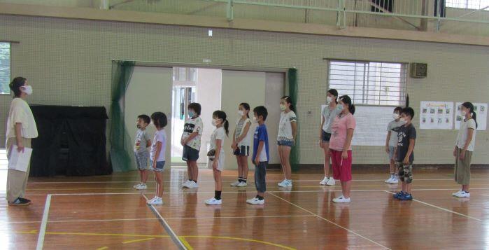 心構えについて話を聞きます。意識して練習に取り組みましょう! ラジオ体操第1をやってみました。だいたいのことは覚えていたようですが、細かい動きや姿勢はまだまだです。これから修正していきましょう!