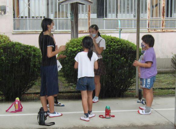 8月24日(月) この日から学校が始まった自治体もあるようです。小林市は次の日の25日(火)から1学期の後半がスタートします。全校児童が元気に登校してくれることを願います。さて、23日(日)に行われた奉仕作業の第2弾です。今回は作業後の片付けや運動場の整備の様子を紹介します。