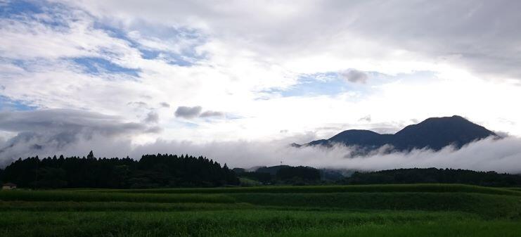 8月27日(木) 台風8号は九州の西の海上(東シナ海)を北上し、朝鮮半島へ行きました。その影響でここのところ、雨が降ったりやんだりしていました。本校は山が近いので、雨雲が発生しやすく、時折激しい雨も降りました。空を見上げる雲と山々がいろいろな景色を創り出しています。この日もそんな景色を見ることができました。