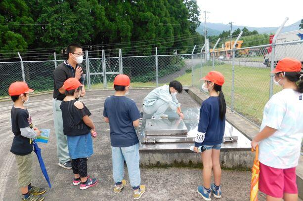 7月15日(水) この日、3・4年生が社会科見学に行きました。行き先は水源地、浄水場です。3・4年生の社会科では身近な地域のことについて学習します。ということで、小林市の水(水道)について学習してきました。この日の天気は曇り、雨でなくて良かったです。市バスに乗って、いざ出発!