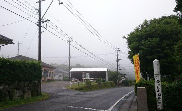 校門から見た景色です。甑岳、韓国岳方面は霧、雲がかかり、見えませんでしたが、夷守岳の姿は見ることができました。