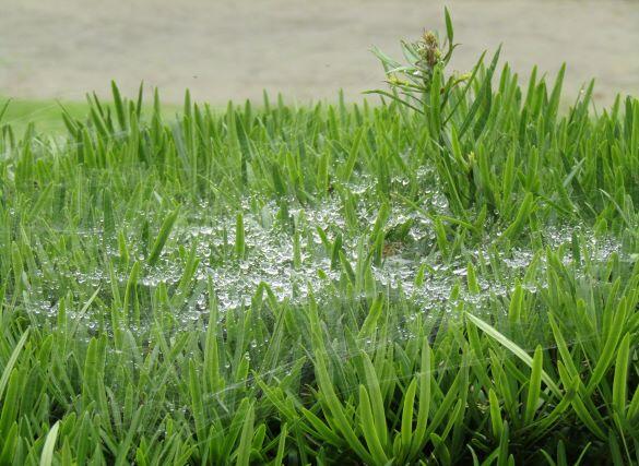 前の日の朝はこんな感じでした。甑岳方面もまったく見えません。学校です。何だか神秘的ですね(^^;) こんな中、子どもたちは登校します。霧の中・・・気を付けて登校しましょう。下は運動場からです。幸ヶ丘三山(さちがおかさんざん=夷守岳、韓国岳、甑岳)も霧の中です。そんな中、植木にこんなものを見つけました。クモと雨が創り出すアート作品?でしょうか(^^)