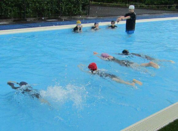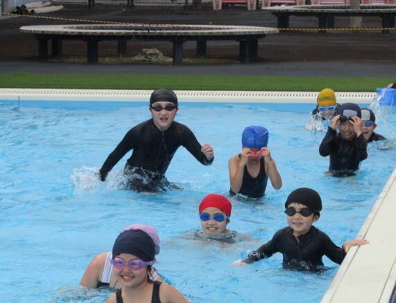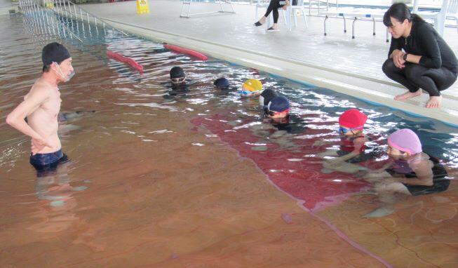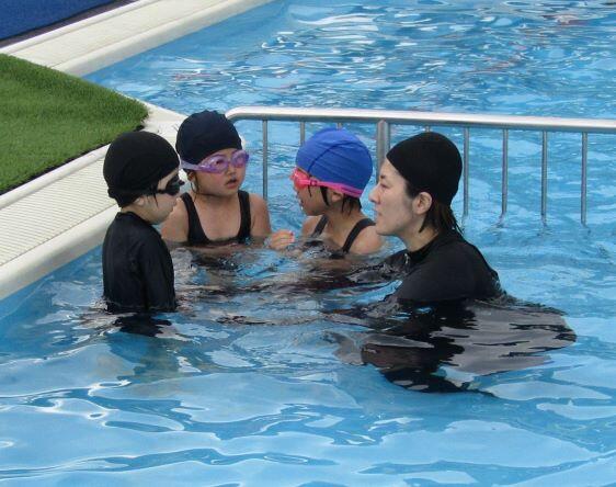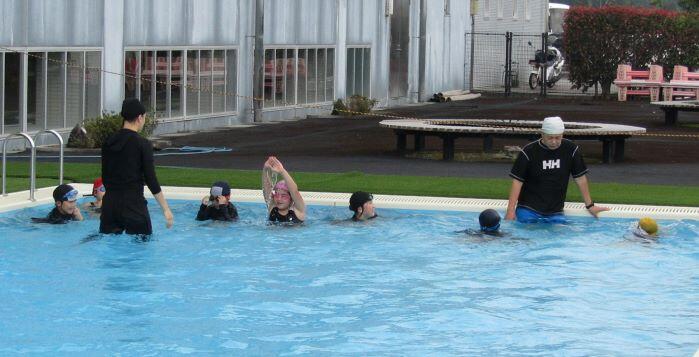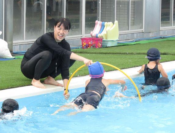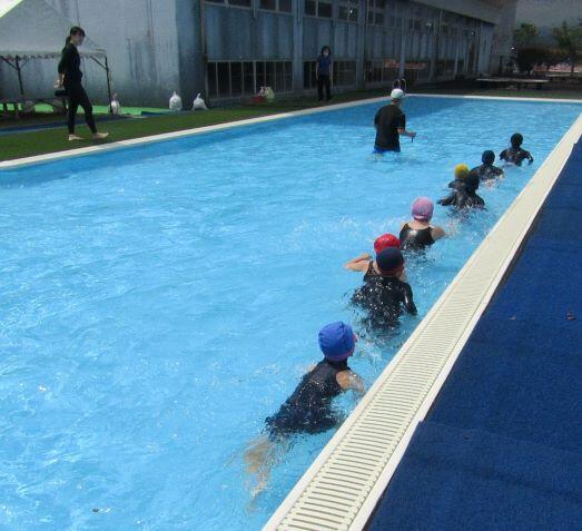 幼児用のプールで活動しました。(^_^)v 最後にインストラクターの方にお礼を言って、この日の水泳学習が終わりました。
