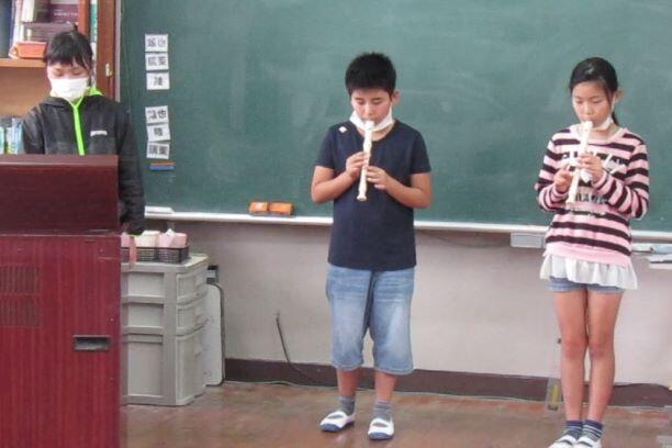 この日の朝に児童集会がありました。今回の担当は5・6年生です。あいさつの後、はじめにオルガンとリコーダーの演奏が