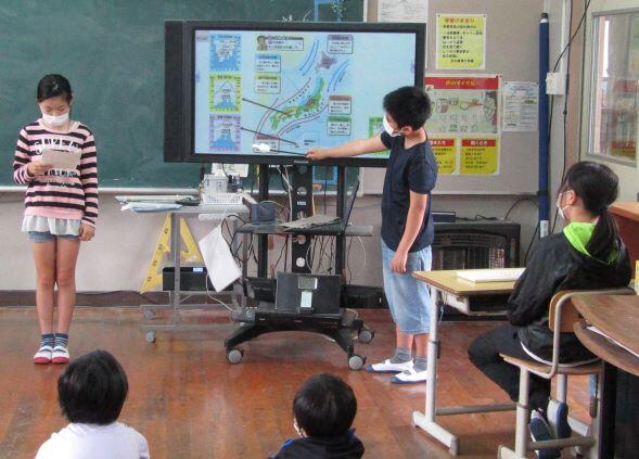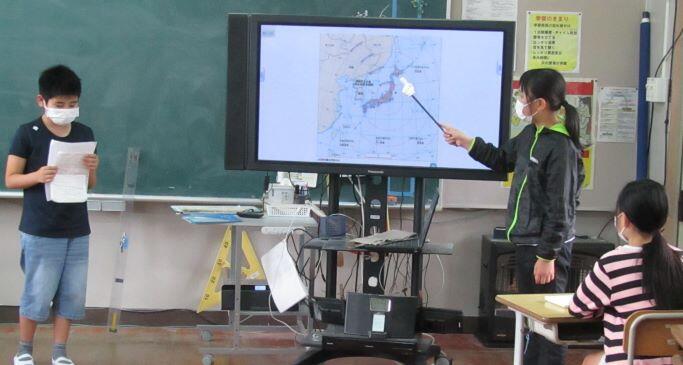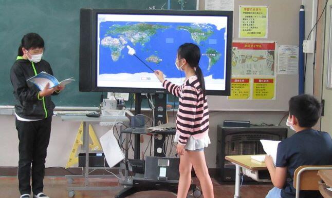 発表してくれました。最初は六大陸や三大洋についてです。途中でクイズもありました。