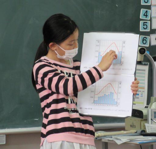 のグラフ(雨温図:うおんず)も使いました。廊下からは教頭先生も発表を聴いてらっしゃいました。