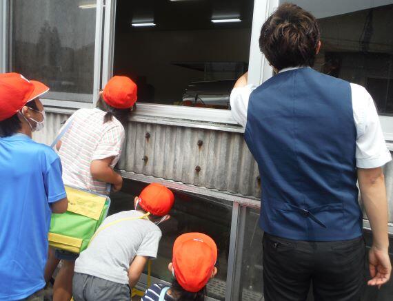 中には入れないので、窓の外から説明を聞いたり、仕事の様子を見たりしました。