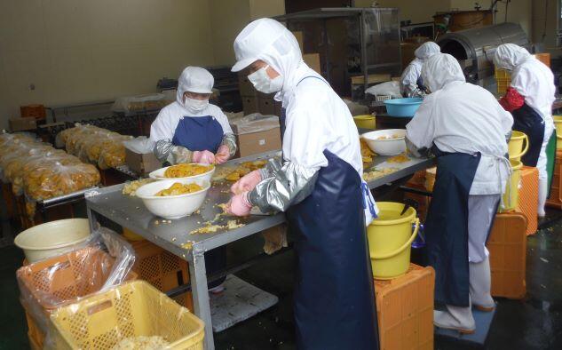 仕事の内容は柚の皮をむいたり、スライスしたり、そして袋に詰めたりしていました。たくさんの量でした。