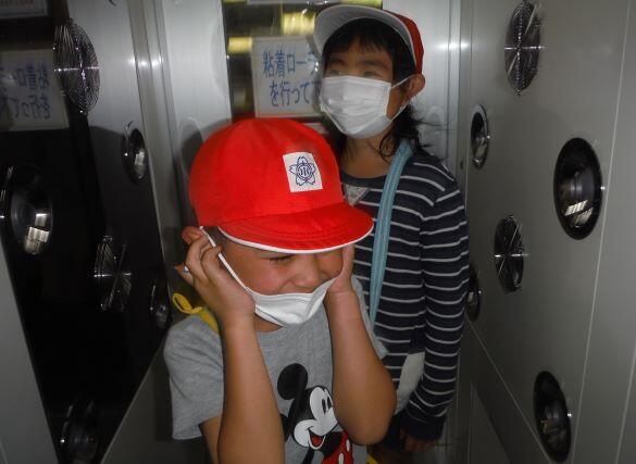 エアーシャワーの体験もしました。強い風でホコリなどを吹き飛ばします!(^o^)