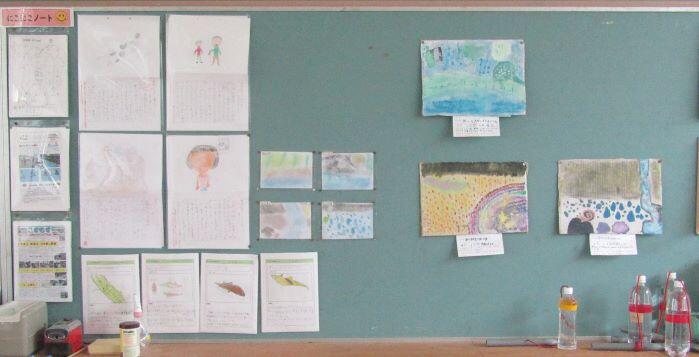 作品や絵日記?みたいなもの、観察記録もありました。下の2枚は1・2年生のものです。通学路探検と学校探検のまとめが
