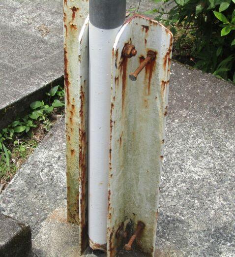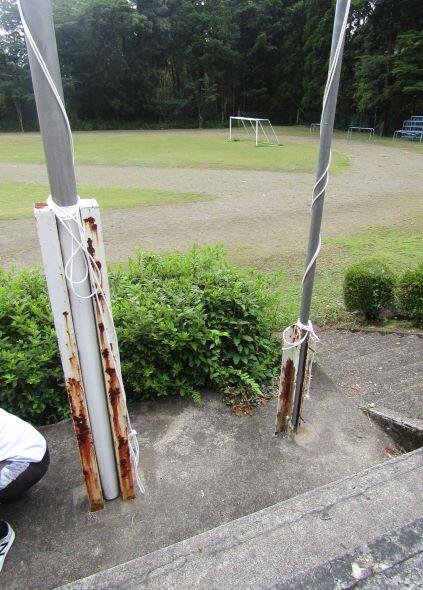 しかありませんね。上の3枚目は職員と用務員さんがサビだらけのボルト(上の2枚目の写真)を確認しているところです。