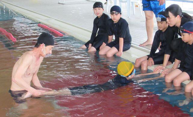 方が3~6年生に指導をしてくださいました。まずは水に慣れるところから、そして、クロールのバタ足のポイントを教えて