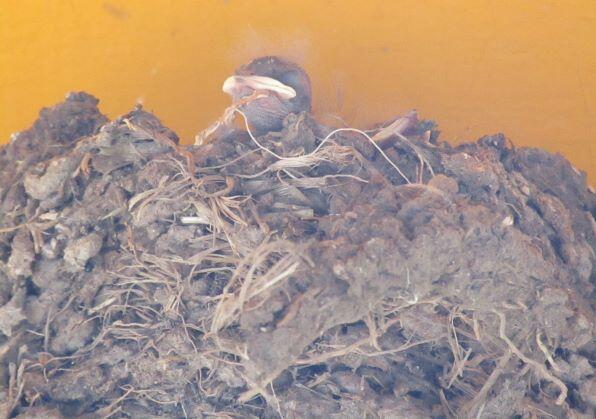 5月下旬、ツバメが卵を産んで、親鳥が交代で温めていました。途中で1個落ちて割れてしまいました。(>_<)