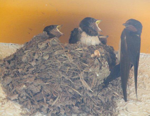 6月18日(金) 午後から雨が降り出しました・・・。さて、この日の第2弾は、ツバメのヒナたちの巣立ちです。(^o^)
