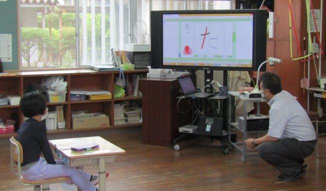 1年生はひらがなの書き順や、短い文を書く勉強でした。2年生は 詩 の勉強でした。感想などを言っていました。