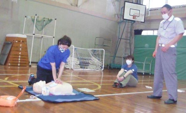 6月3日(水) この日、幸ヶ丘小の体育館で、西小林小学校の先生方と合同による職員向けの「心肺蘇生法講習」(救急法)がありました。新型コロナウィルスの影響で、水泳指導の実施がどうなるか心配していましたが、先日、実施が決定しました。水泳指導が始まる前に、職員がきちんと心肺蘇生法の仕方を学習することはとても大事です。水泳指導時に何がおきても心配にならないように、しっかりと講習を受けました!講師には 西諸広域行政事務組合消防本部 中央消防署 の方々が来校されました。ありがとうございました。