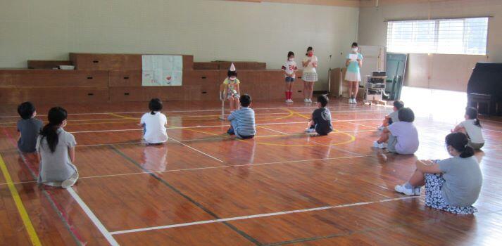 6月8日(月) この日、4月に予定していた、1年生を迎える会 を実施しました。計画委員会による企画・運営でしたので、経験を積ませるためにも、ずいぶんと遅くなりましたが、この日に実施しました。1年生が計画委員会の児童に連れられて入場しました。