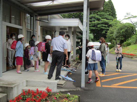 しを行います。そして、保護者と一緒に帰ります。