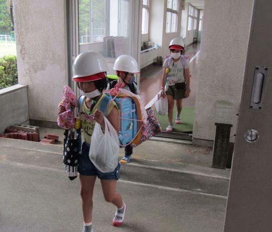6月9日(火) 前の日は「五月晴れ(さつきばれ)」と言えるほど、とても天気のよい日でした。この日は雲が低くたれこめ、雨が降りました。この日からの天気予報は雨マーク☂ばかりです。関東あたりでは、まるで台風のような動画が視聴者から寄せられ、ニュースで流れていました。いよいよ梅雨本番です。大雨に備えて、保護者への引き渡し訓練=5月31日(日)と避難訓練=6月5日(金)に行いました。どちらの訓練も風水害を想定していますが、噴火の時も同じような避難になります。毎年のように大雨が日本列島を襲い、各地で災害が起きています。いつ何時、大雨になるかもしれません。しっかりと避難できるようにしておきましょう。また、本校のあるこの地域は土石流危険区域に指定されています。本校の体育館は避難所に指定されていますが、土石流の危険がある場合には、南地区体育館まで避難するようになっています。地域の方と南地区体育館への避難訓練も必要ですね。また、大きな噴火の時も、南地区体育館への避難となります。