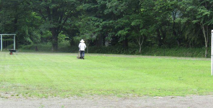 運動場の草刈りとプールの草刈りです。この時期は草がすぐに伸びるので、何回も刈ることになりますね。運動場は用務員さん(2人・・もう一人はどこにいらっしゃるか、分かりますか?)、プールは保護者の方が刈ってくださいました。