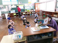 【5月20日】子ども達が楽しみにしている読み聞かせがありました。本年度も池田様に来ていただいています。様子を見に行くと、みんな真剣な表情で話しに聞き入っていました。本や文字に触れることはとてもよいことです。地域の方のご協力に感謝です。