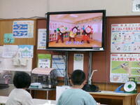 【5月15日】虫歯予防のため、本年度もフッ化物洗口に取り組みます。映像を見ながら、音楽に合わせての実施です。永久歯はもちろん、乳歯のうちから歯を大切にしましょう。