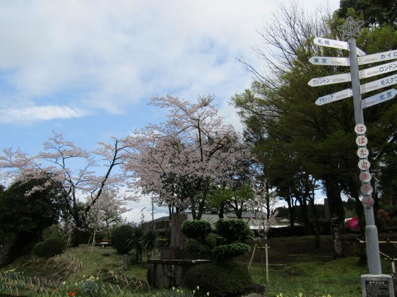 校舎の前庭には桜、芝桜などの花々が咲いています。抜けるような青空に映えてとてもきれいでした。写真が横向きで(>_<)