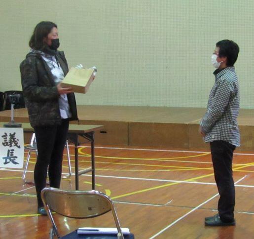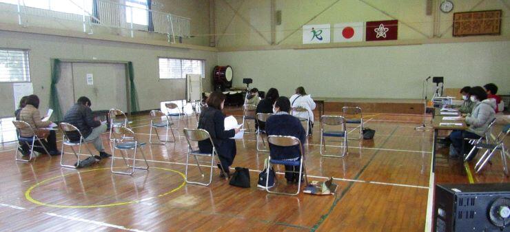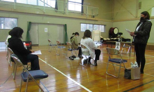 小規模校なので、体育館を広々と使って総会を行いました。下は総会の様子です。