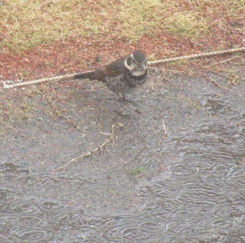 おまけ・・・、参観日の日は雨が降っていました。授業を見て回っている途中で運動場に目をやると、鳥が3羽ほどいました。降りしきる雨の中、しきりに地面をつついていました。左側はツグミのようですが・・・、右側の鳥はちょこっと違いますね。ヒヨドリかもしれません。春が近づくにつれて、運動場にやって来る鳥たちも増えてきました!ツバメもそろそろかな?(^o^)