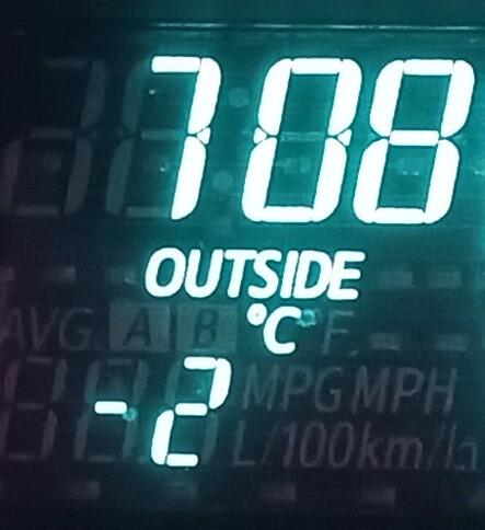この日8日の朝は冷え込みました!(>_<) キ~ンという感じの空気でした。下は前日の幸ヶ丘三岳です。気温はこの日8日のもの。前日は終日曇って、寒い一日、この日は晴れて気温はあがるようです。
